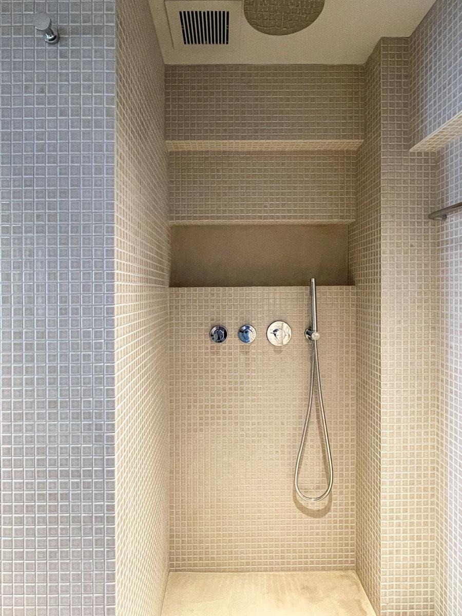 奥に見えるコンクリートの壁が