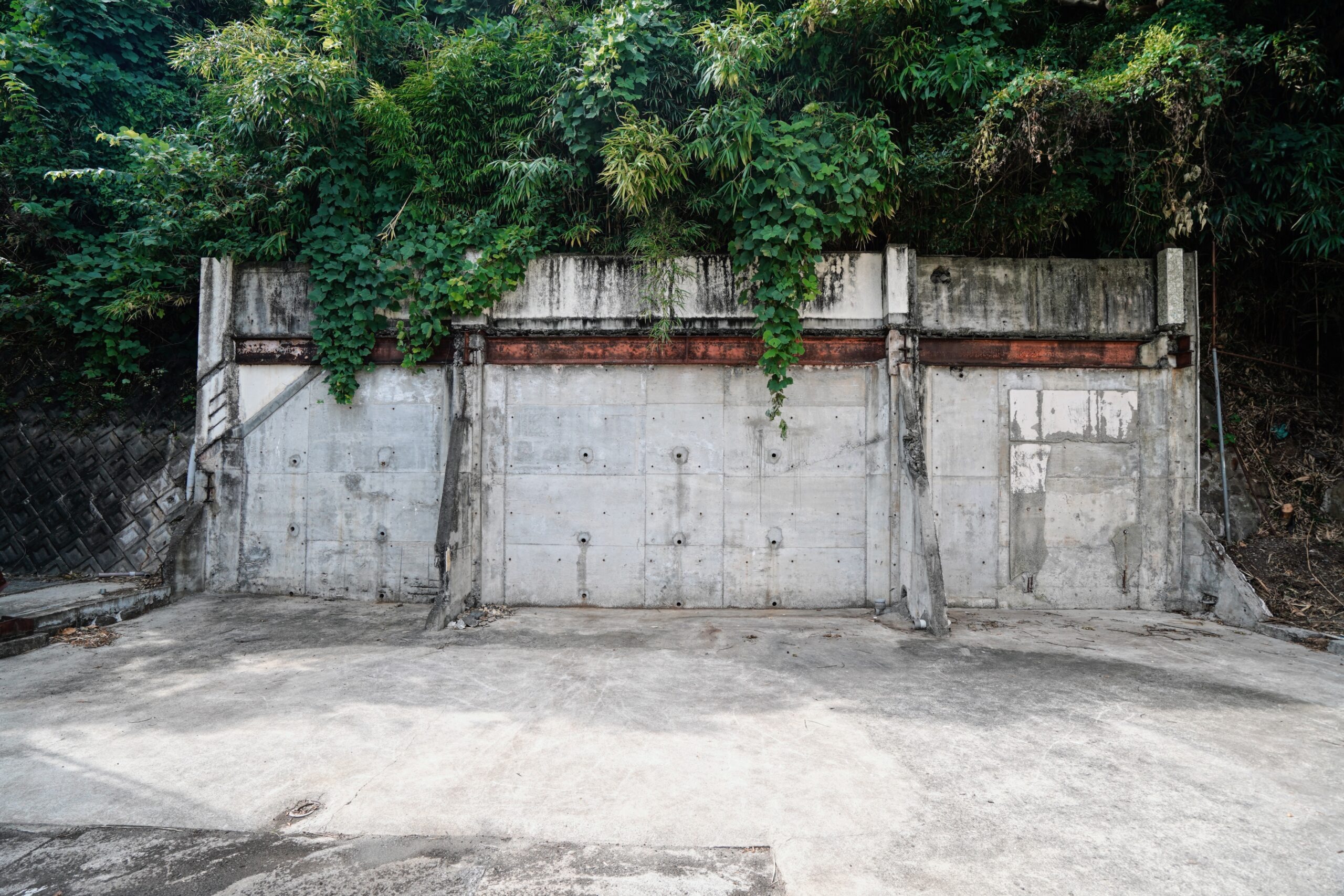 コンクリートの壁に、