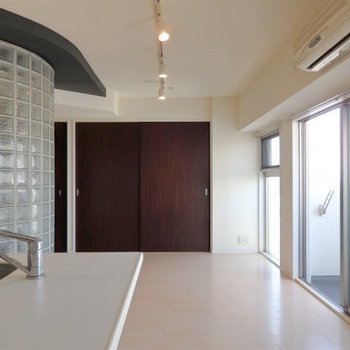サニタリーのガラス柱を出ると