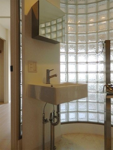 ガラスブロックの柱に
