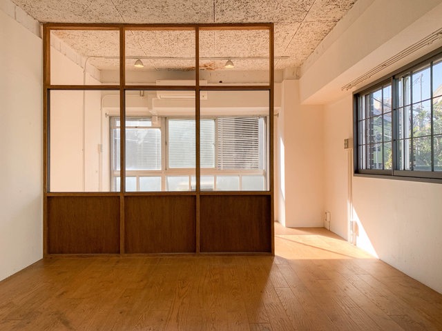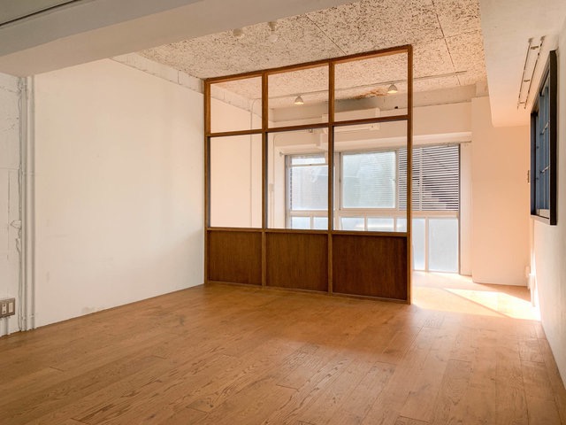 木製の間仕切り壁が