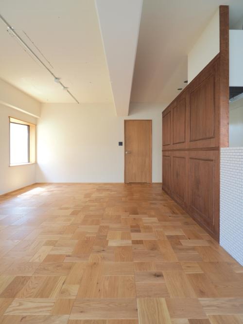 やわらかな色合いの無垢材を ぎゅぎゅっと寄せ集めた、 パーケットフローリング。 色がこっくりしているところ、 かと思えばあわいところもあり。 色の濃淡に惚れ惚れします。
