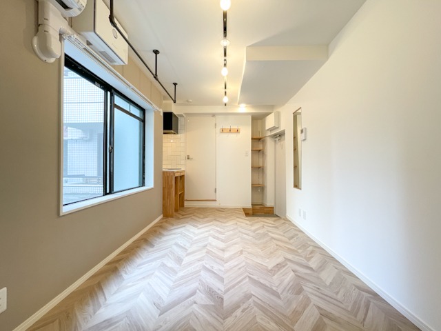 ヘリンボーン柄の床にタイル張りのキッチン。可愛いが詰まったミニマルワンルーム(東京都杉並区17㎡の賃貸物件)