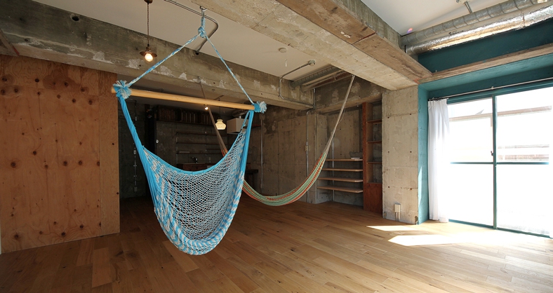 実際に家具を配置すると、ここまでは広々とは使えなさそうですが、部屋の中でゆらゆらのんびり...と、まったりしてたらつい忘れそうになりますが、ここは原宿、東京のど真ん中!