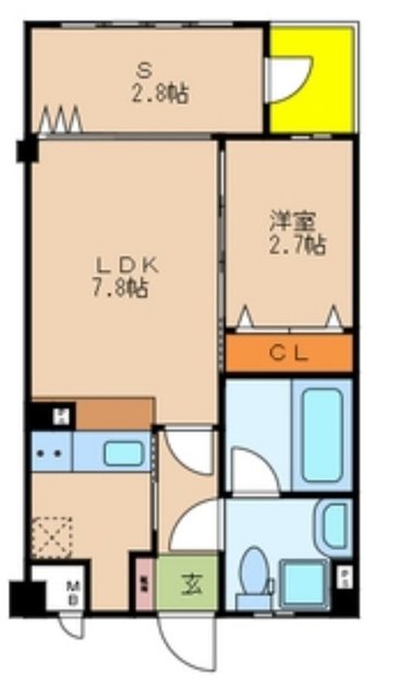 間取りはこう。写真は別部屋につき、少し異なる箇所があります。キッチンは結構広そうですね。リビングに隣接している約3帖の洋室は、ベッドルームに。