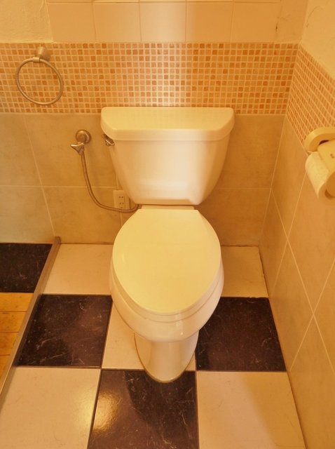 トイレも同室に。お部屋が斜めっているとこの正方形が妙に落ち着きますね…。