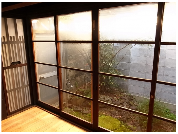 窓も上の方だけ磨りガラスが入っていて、