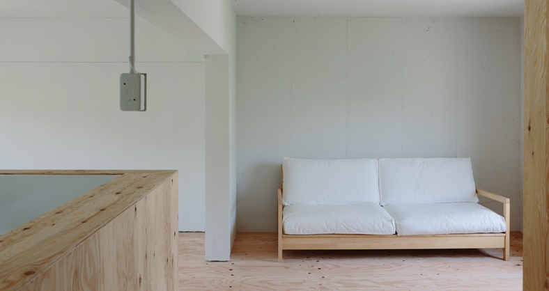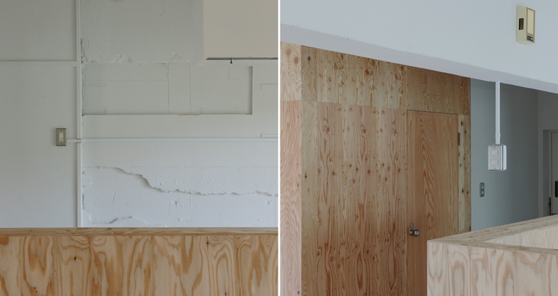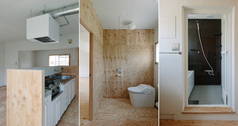 それでいてこの、躯体の粗い壁面に白い塗装。照明のスイッチが中空にぶら下がってるのも面白いんですけど……。団地リノベならではの遊び心だなーと思うのです。