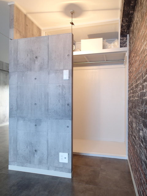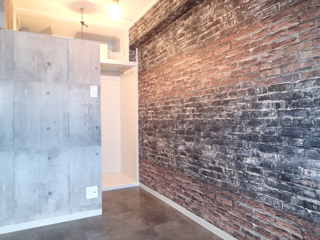 横に入れば寝室。壁紙はコンクリ調。