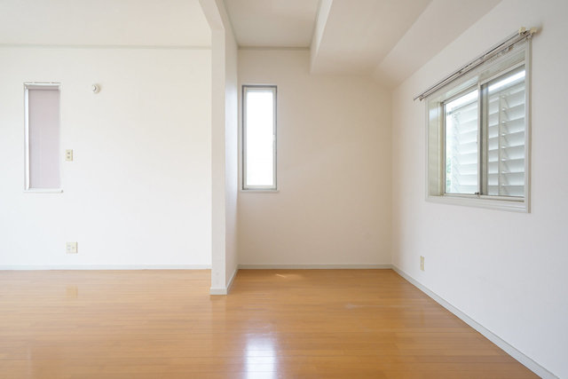 最後の1部屋は、実は9帖。先ほどの2部屋の向かいには階段がありますが、こちら側には無い分やや広めです。バルコニーがついて3面採光と、リビングの次にメインとなりそうなお部屋。