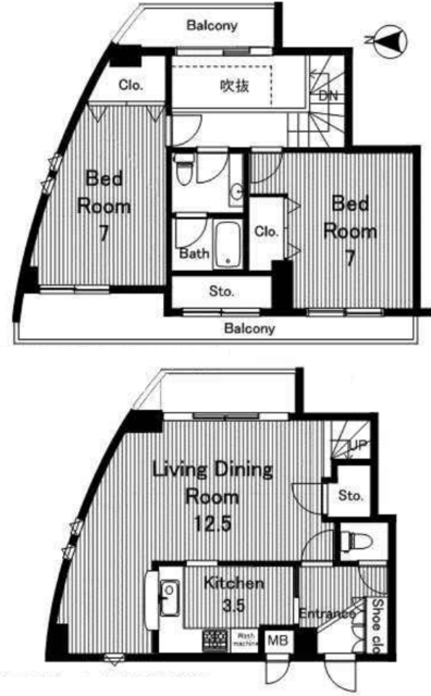 階段の上には大きめ7帖のお部屋が二つあるのね。