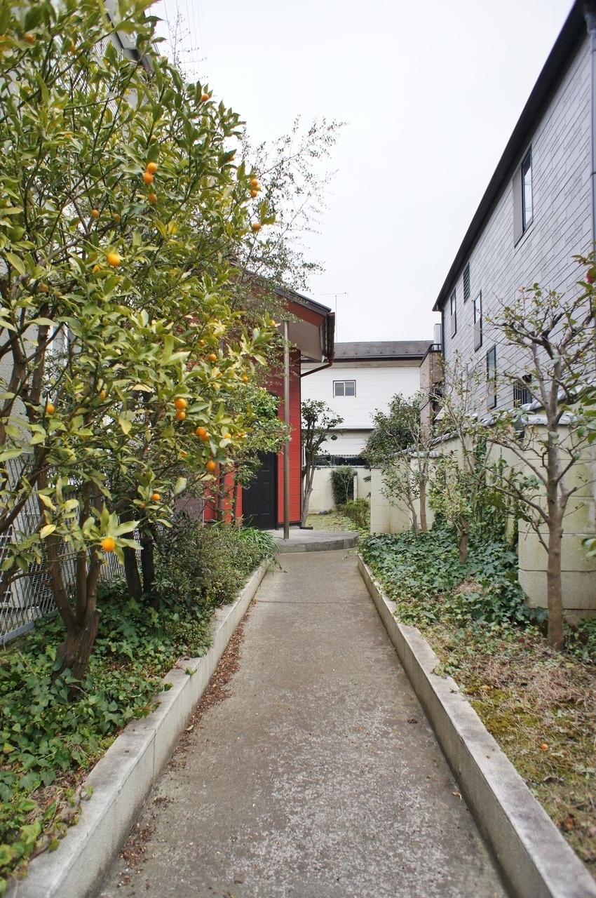 少し長めのアプローチには豊かな植栽。