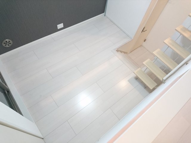 このロフト、2回階段を上がるんです。