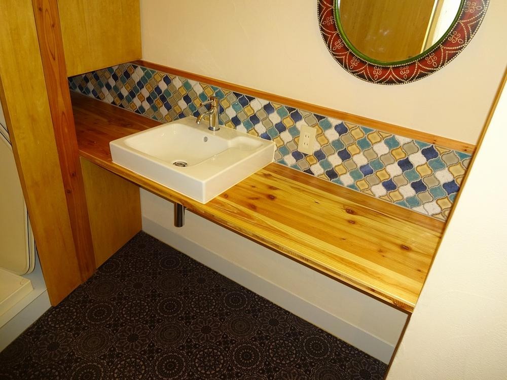 洗面台もいい感じのウッディ感と