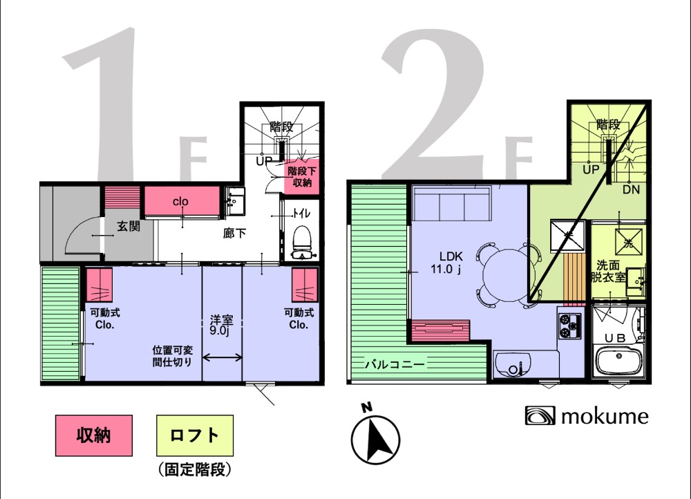 1階は間仕切りの位置を変えて