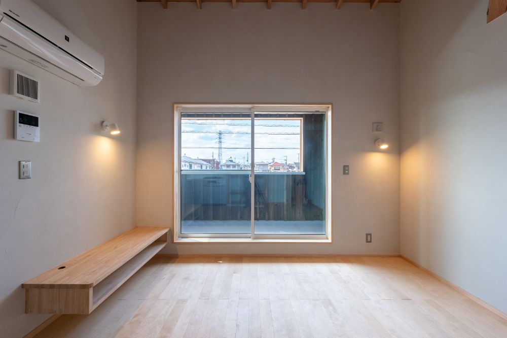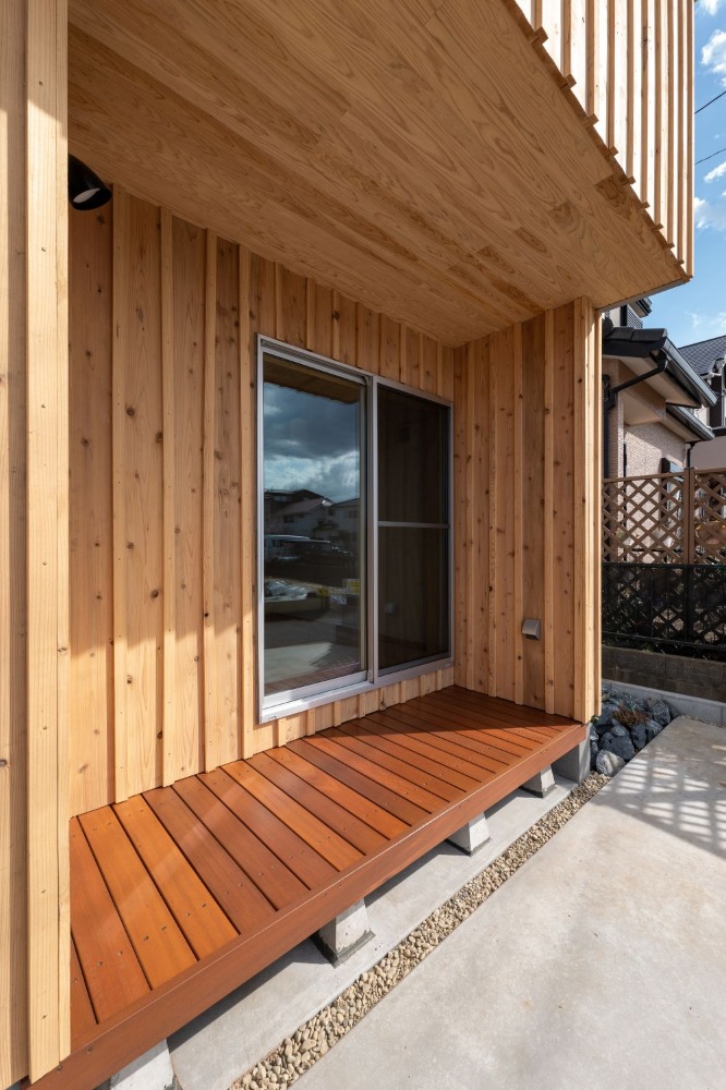 窓枠にも木材を使用するなど
