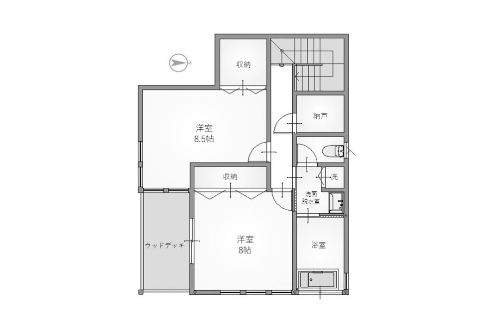 8帖の部屋の外にはウッドデッキが