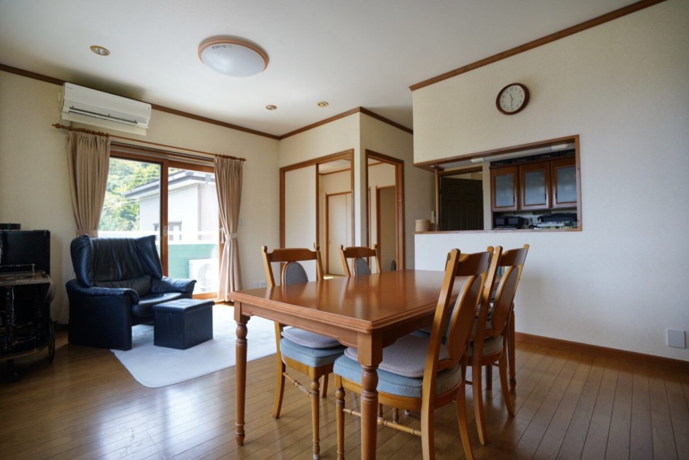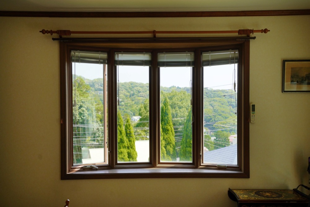 大きな掃き出し窓からは緑の景色を