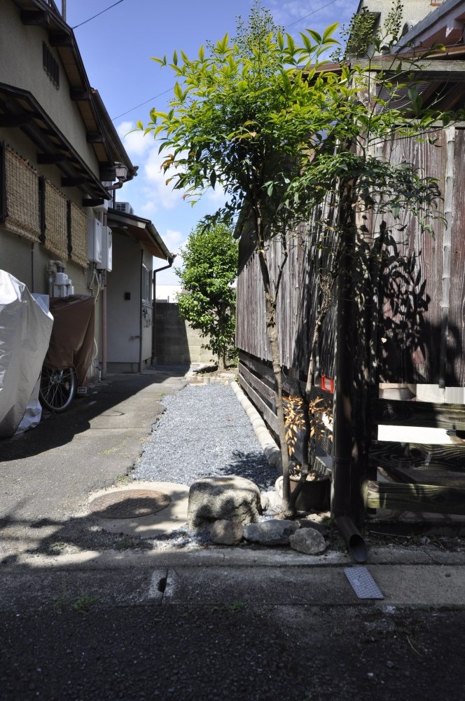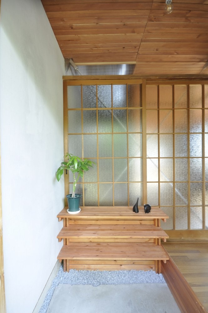 砂利をあしらった土間に、