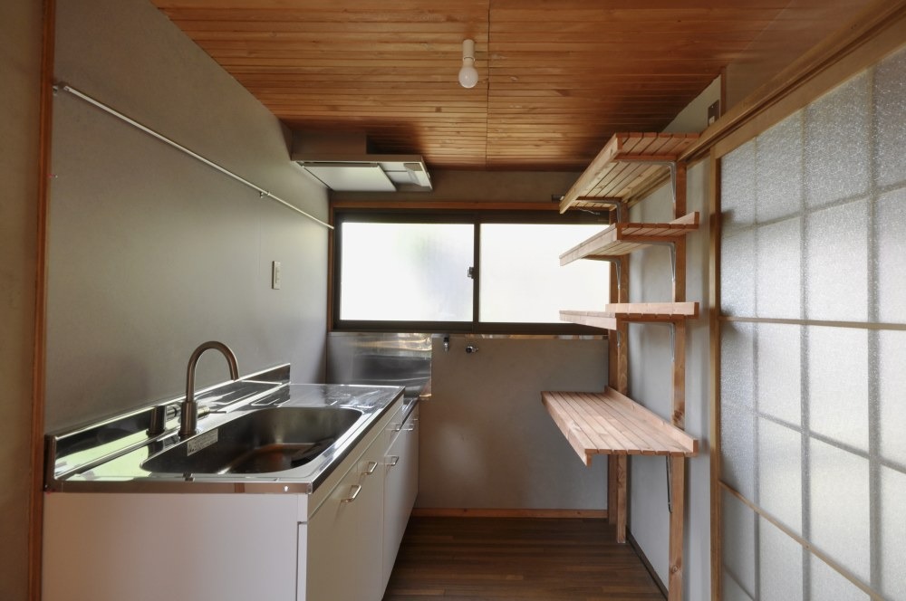 造り付けの木の棚。