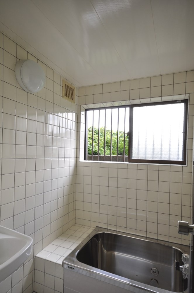 浴槽と白いタイルの