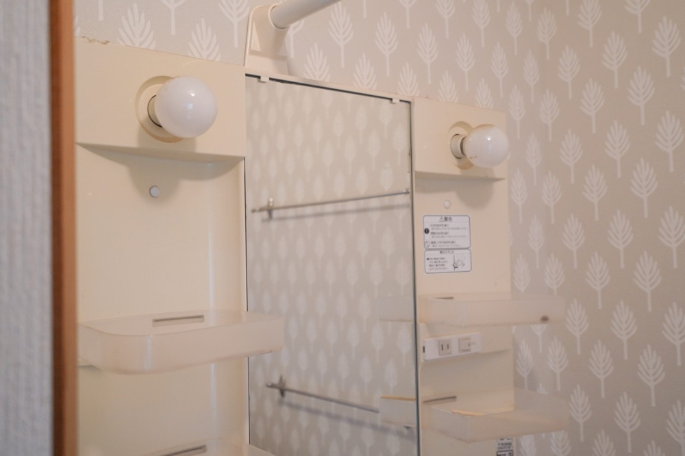 懐かしの洗面台には収納もしっかり。