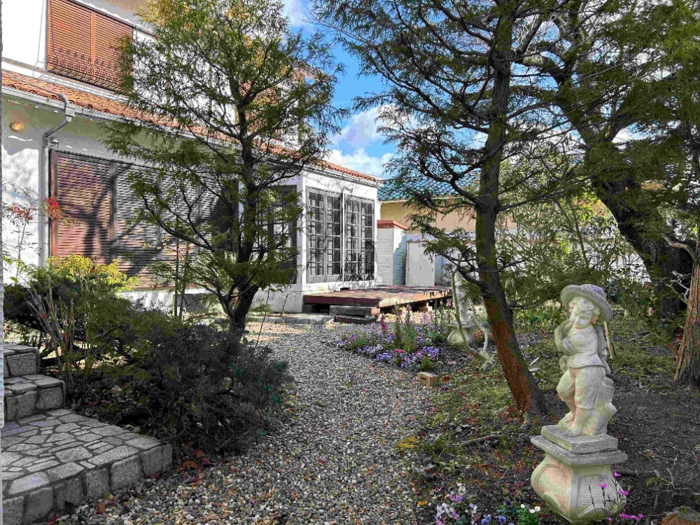 桜の木が堂々と 枝を広げる、ガーデン。 春にはデッキに出て お花見を楽しめます。