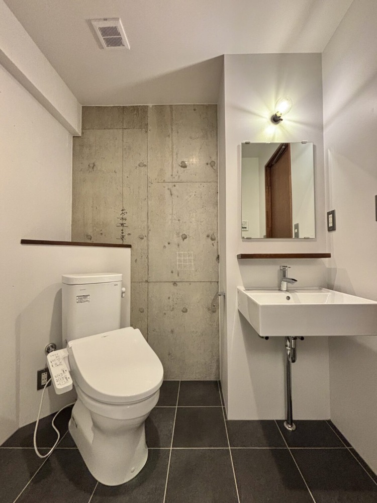 独立洗面台と洗濯機とトイレは同じお部屋。
