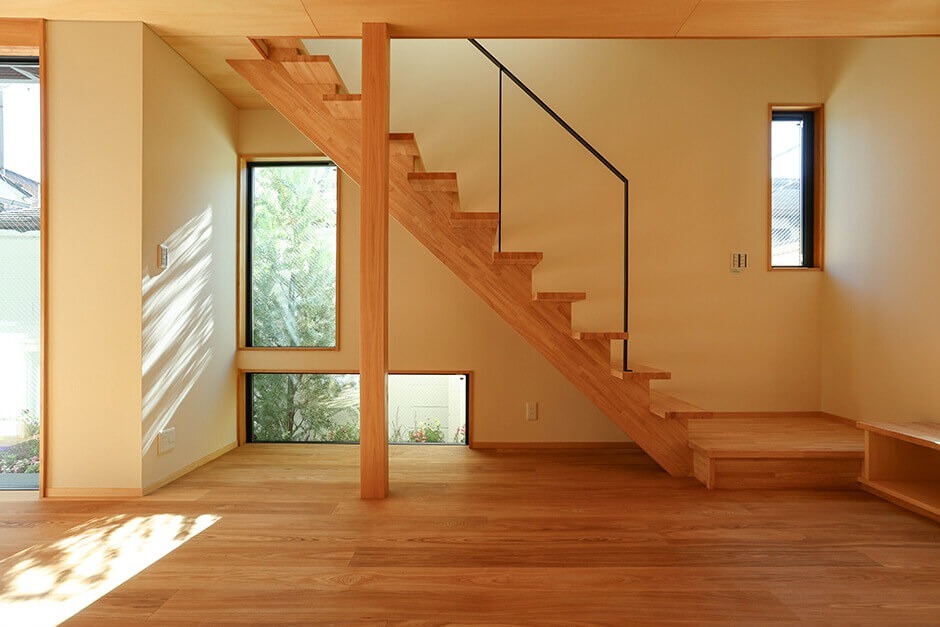 玄関を開けると目に入る 階段と窓の配置が美しくて とても、うれしくなるお家。