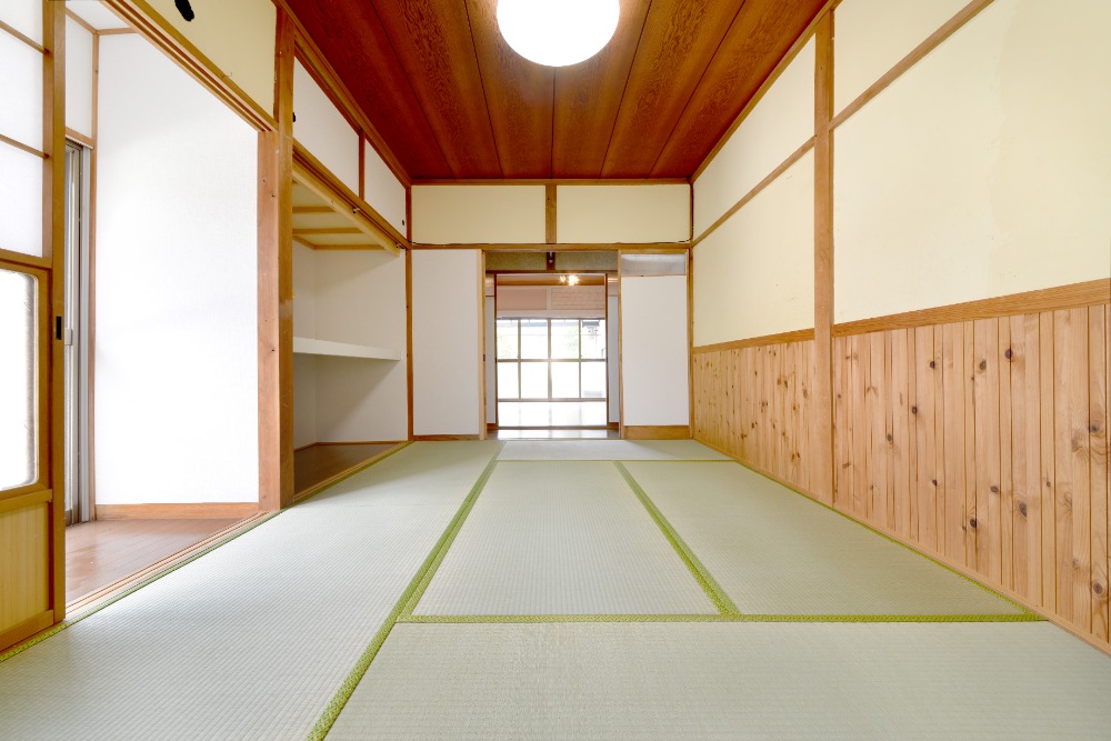 静岡県伊豆の国市。 右にも左にも木々が生い茂る のどかな住宅街の中に建つ 大正生まれの平屋です。 2年前に耐震補強工事を行い さらに床や畳をリフォームして 安心して住める家に生まれ変わりました。