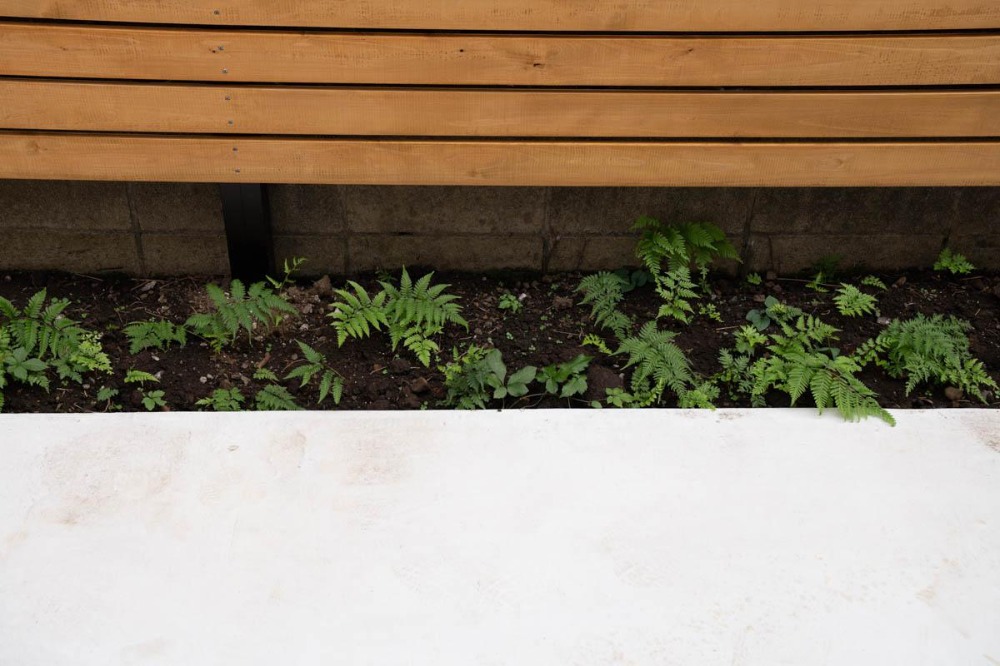 ウッドフェンスの足元部分にも