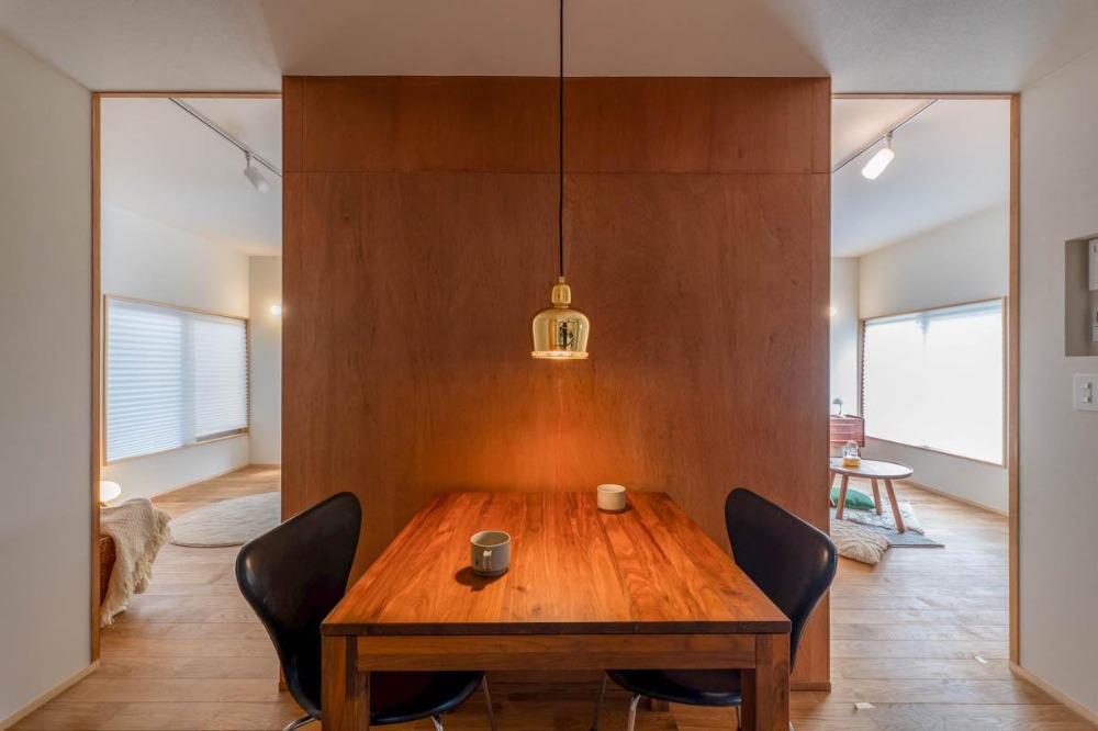 ラワン材のアクセントウォールが