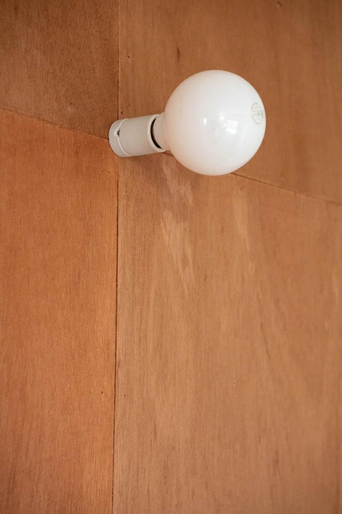 ラワン材の壁に、