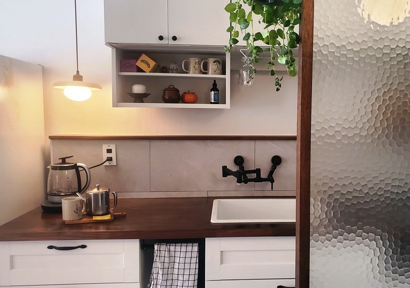 ぽっと灯るペンダントランプが なんとも愛らしくて、 思わずお気に入りのマグに コーヒーを淹れたくなります。