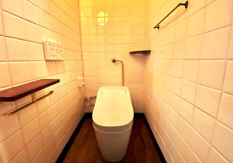 タオルバーや トイレットペーパーホルダーも こだわって素材選びを されたのだろうなあ。