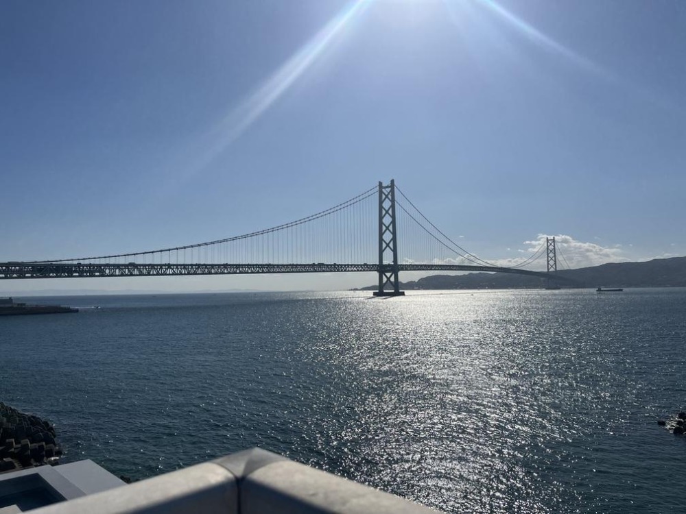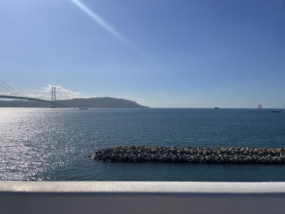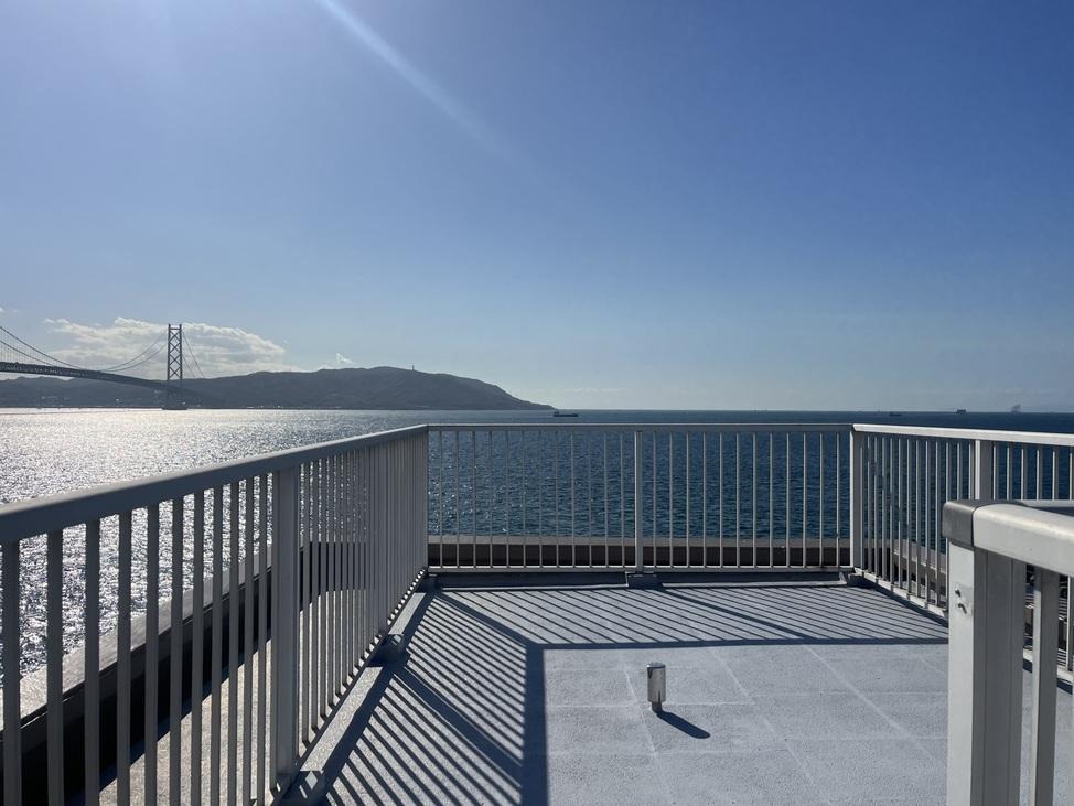 バルコニーの先に広がるのは 明石海峡大橋と淡路島、 そして穏やかな海の景色。