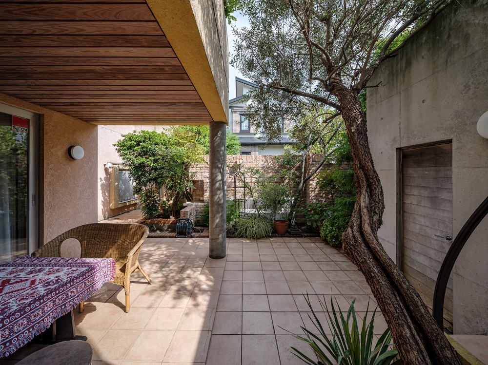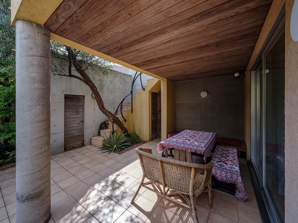 まるで南欧のパティオのようなお庭で