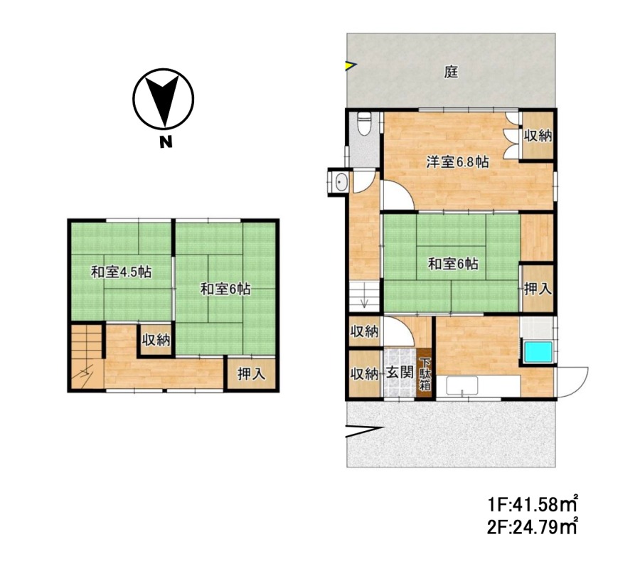 1階にキッチンと和室と洋室、