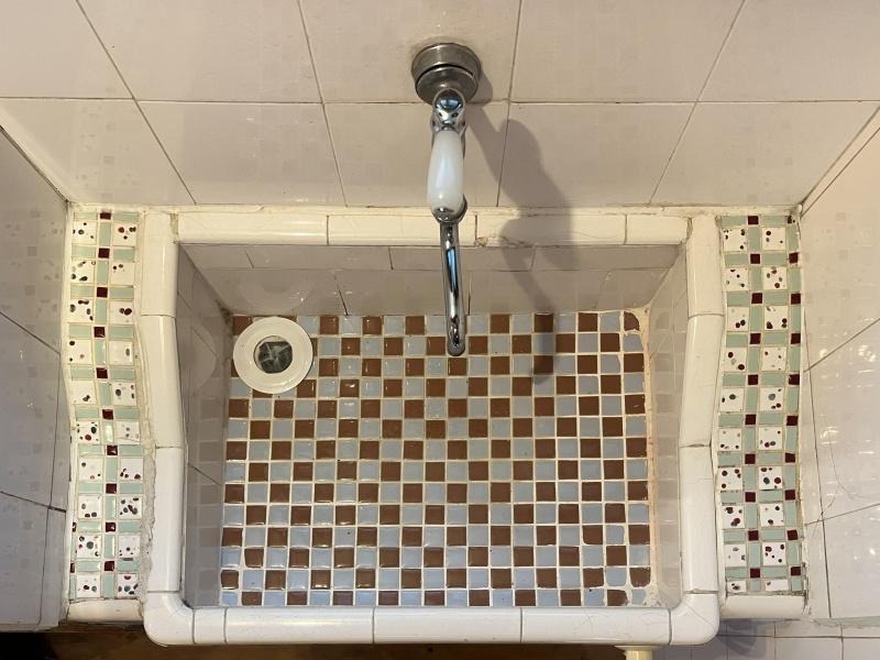 レトロな洗面台が控えています。
