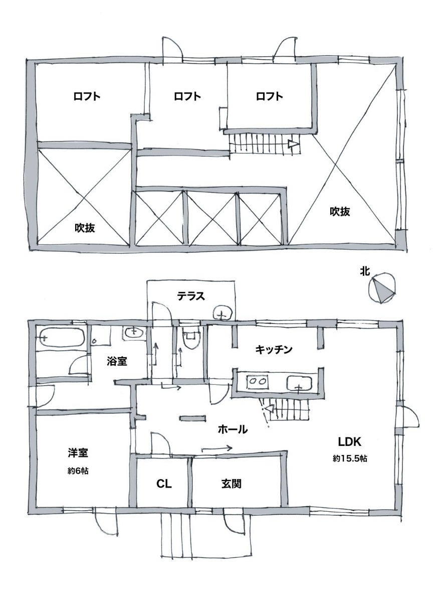 寝転がる場所、 腰を下ろして過ごす場所、 収納や作業に使えそうな場所。