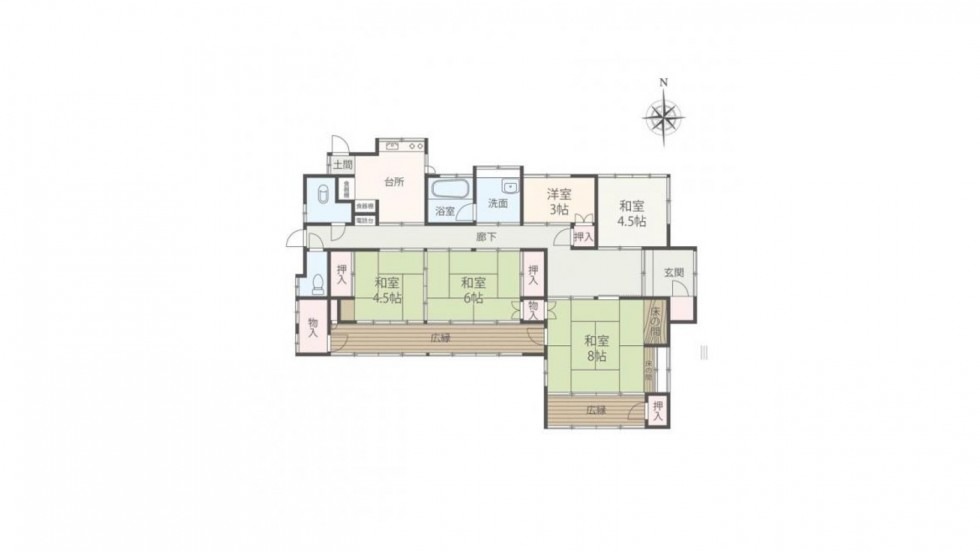 広縁で構成された平屋造りの古民家。