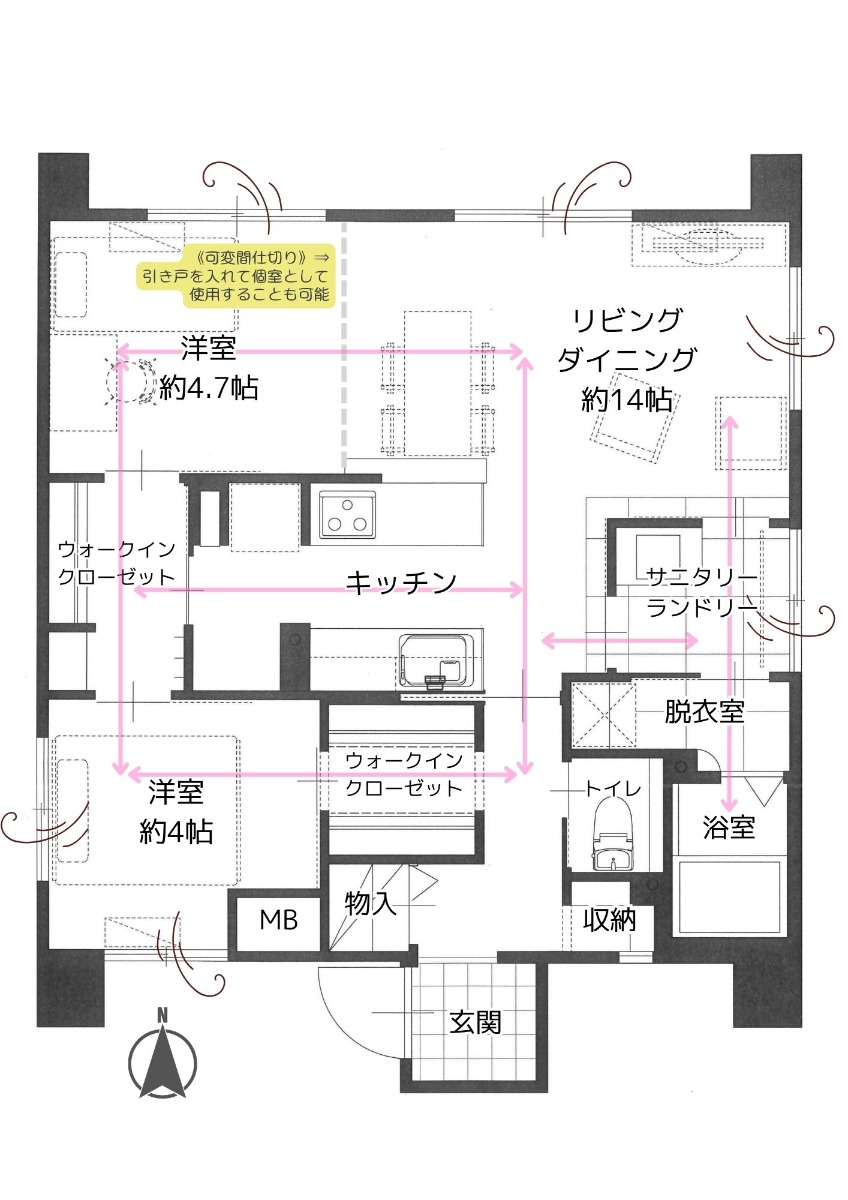 回って納得、住んだら実感。光と動線がくるりと巡る、四面採光と眺望を楽しむ2LDK(京都市中京区64㎡の売買物件)