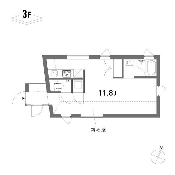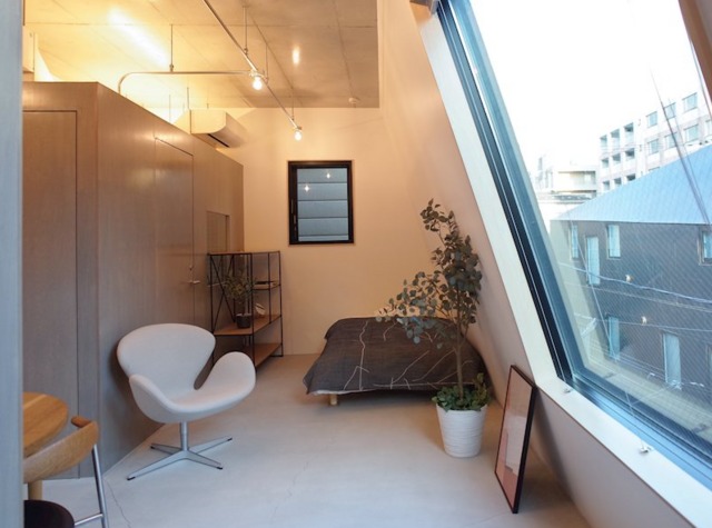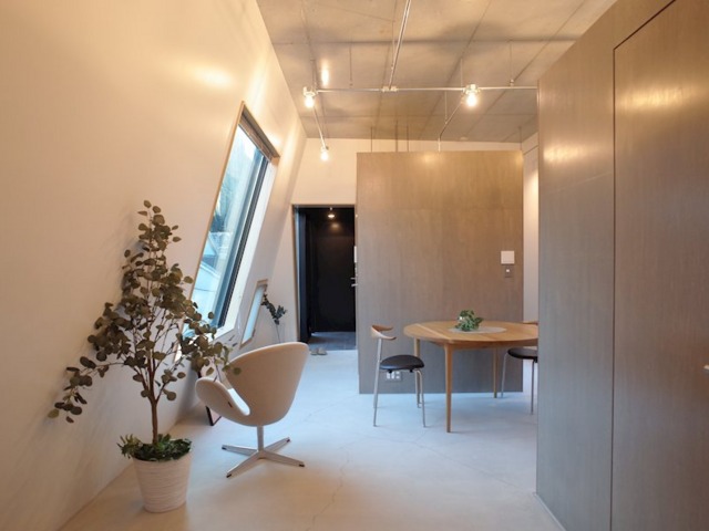 神楽坂の人気パン屋の上。 斜め壁のスタイリッシュな角部屋で都市生活を満喫する (東京都新宿区35㎡の賃貸物件)
