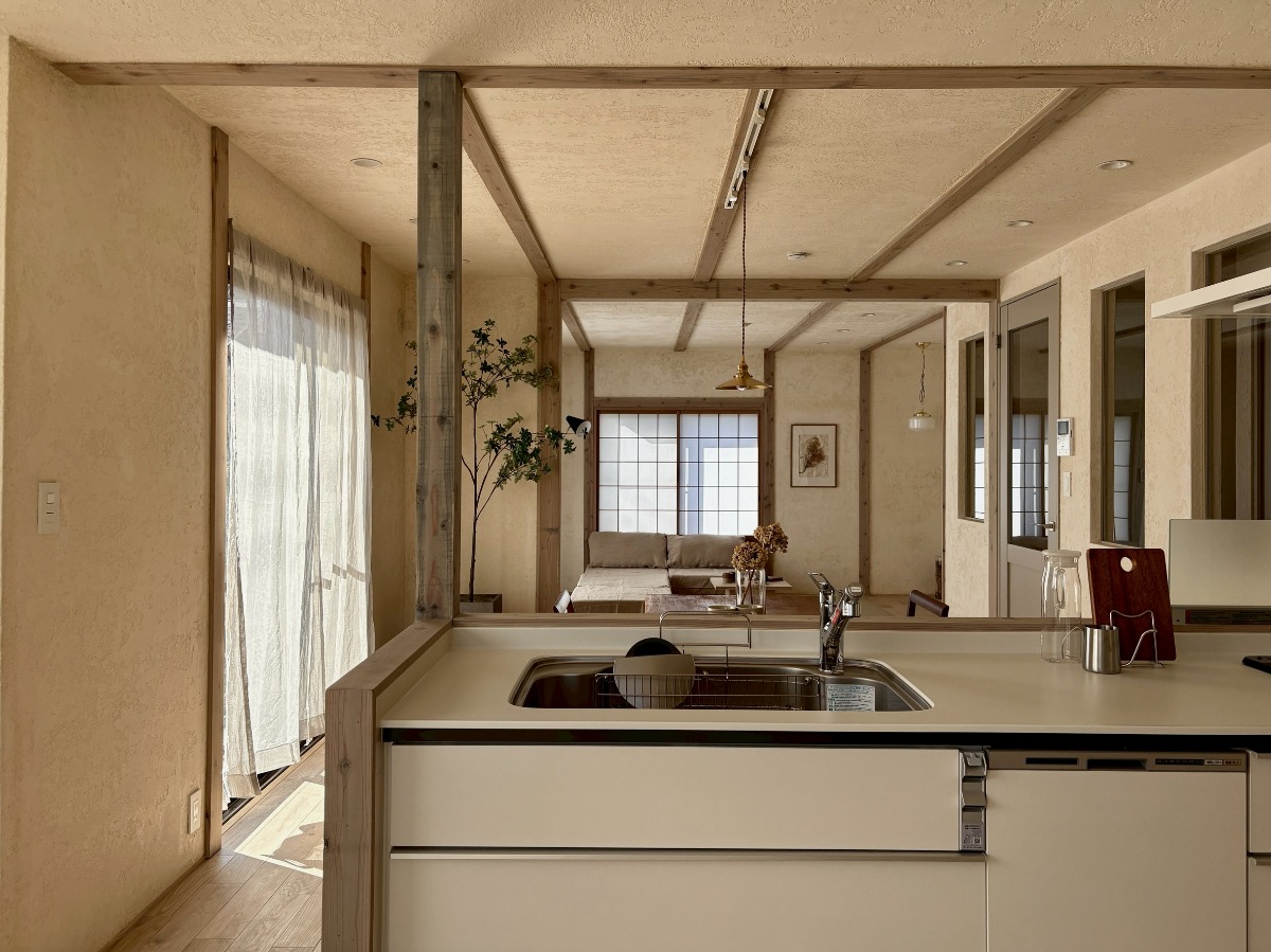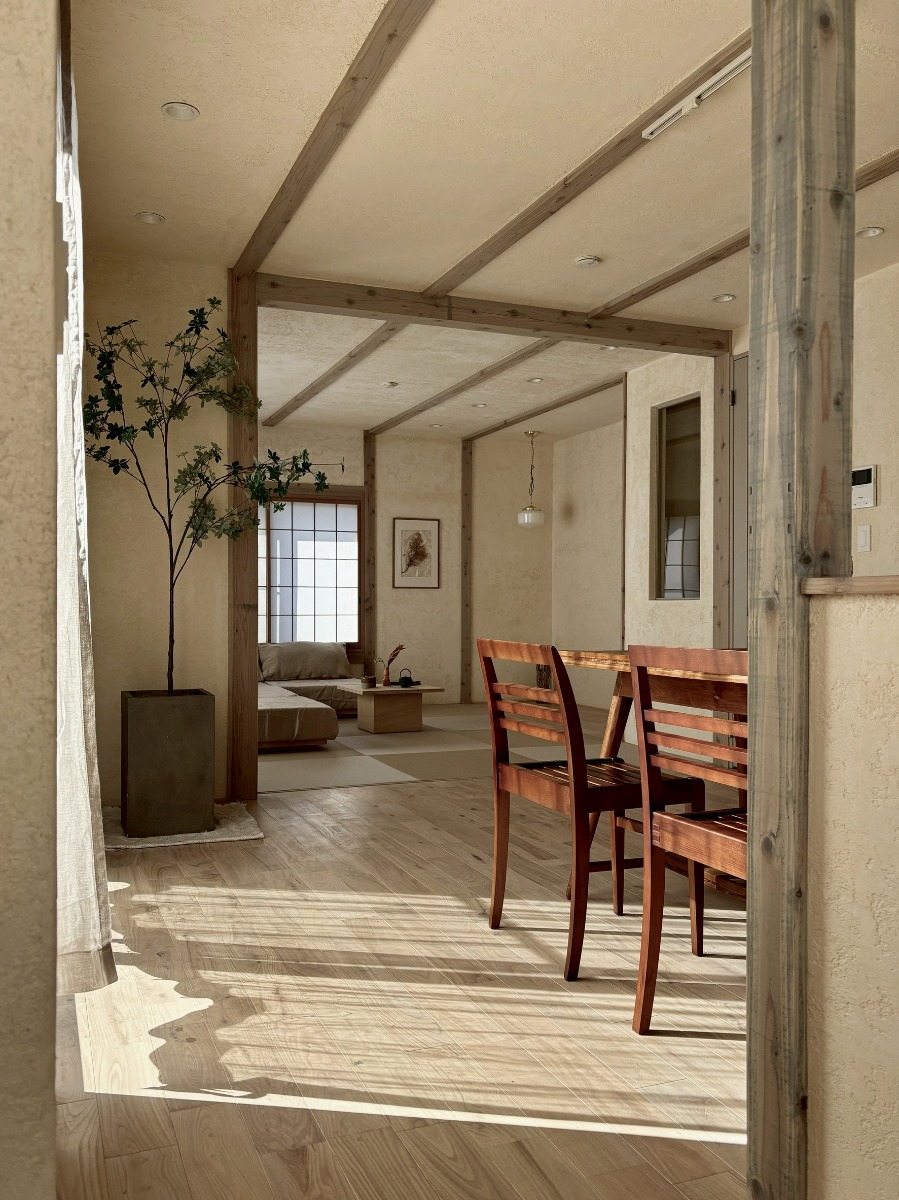 やわらかなトーンで統一された柱や建具が