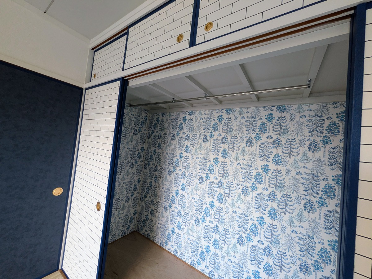 収納の引き戸はタイル柄。