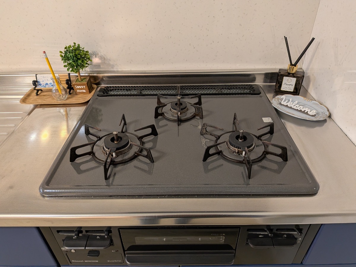 コンロは3くちのグリル付き。