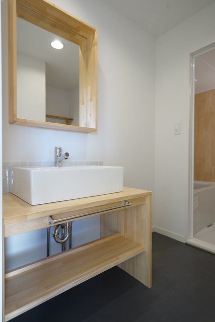 洗面台は大工さんお手製の造作タイプ。