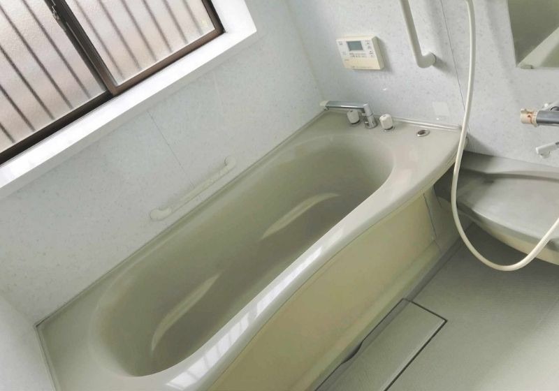 お風呂は足を伸ばして入れるサイズ感で、