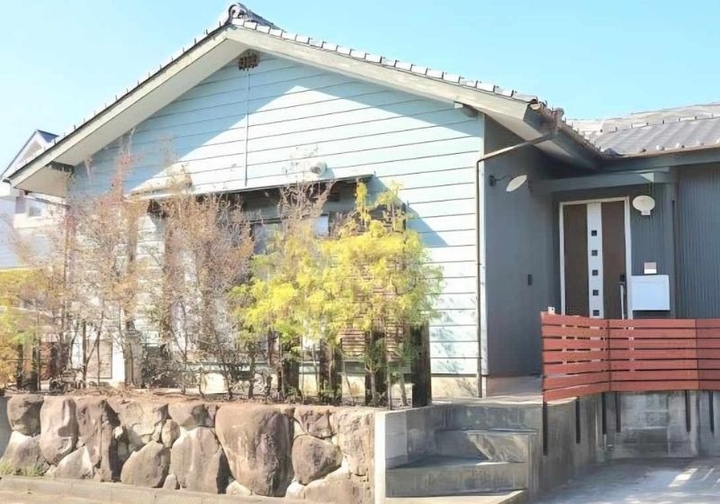 水色の可愛らしい平屋。