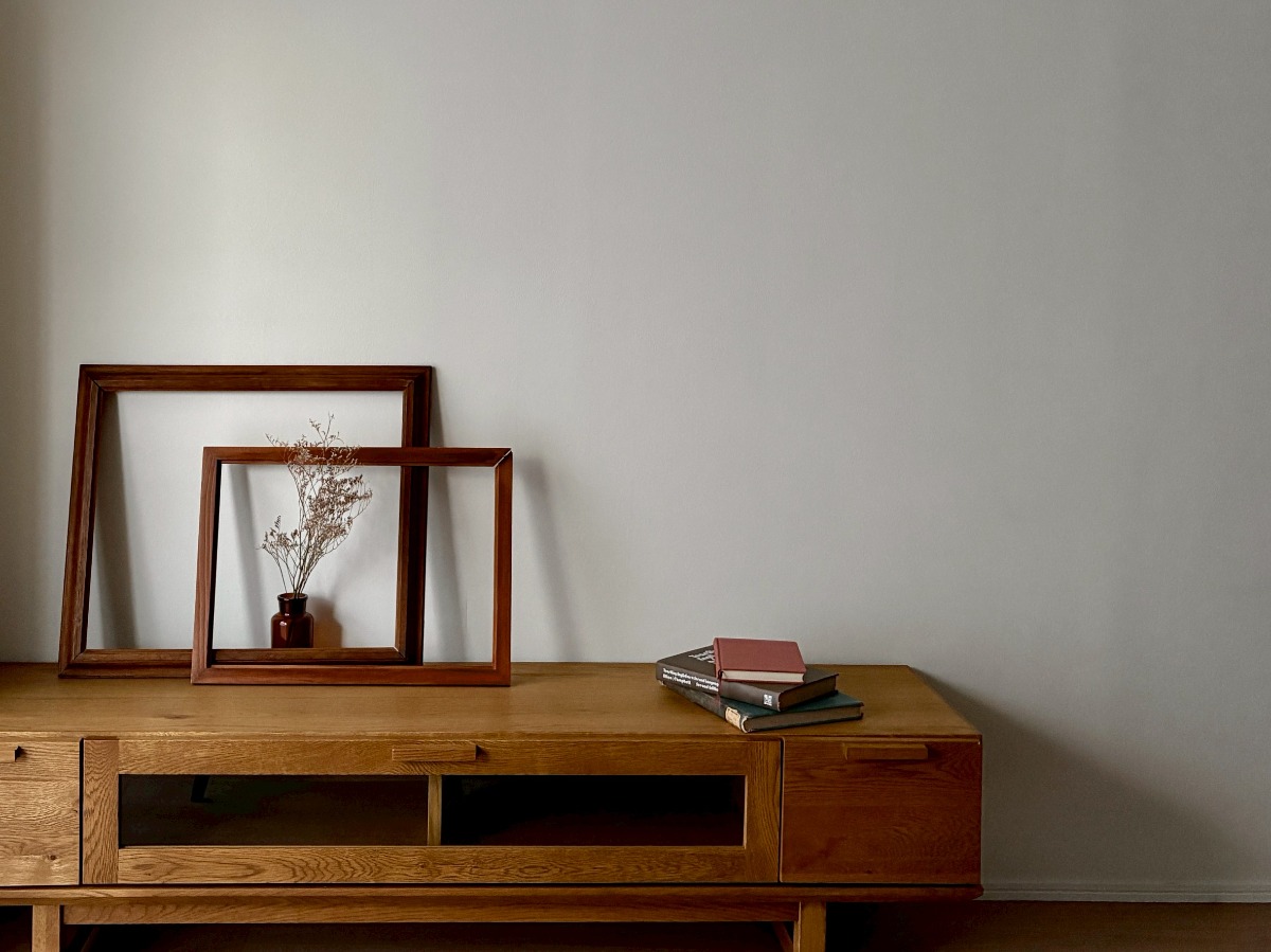 少し色味の深い木の家具、